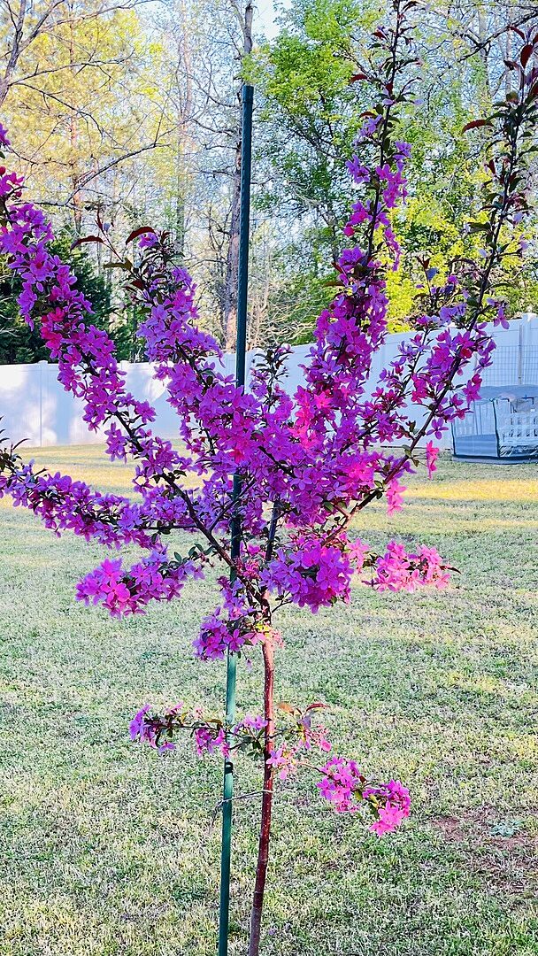 I got my Prairifire Crabapple Tree in the middle of summer and I didn’t think the tree was going to make it but one year later it looks gorgeous! It’s doing amazing 🤩 The first 3 pictures were taken 1 month after being planted and the last three show the current situation with beautiful booms.