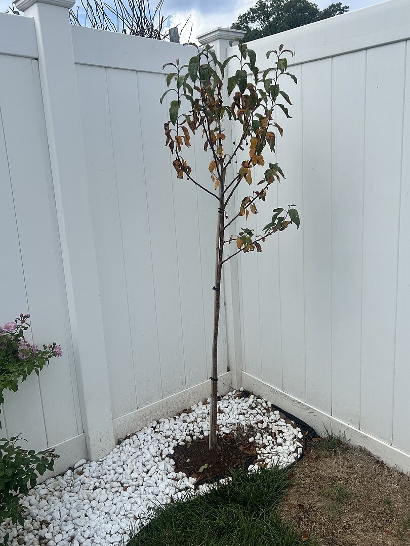 I was so excited to get my tree. It arrived on the hottest day of the year. The tree looked bad, with no green leaves, only brown ones. But I got a replacement tree, a different type, which is thriving.