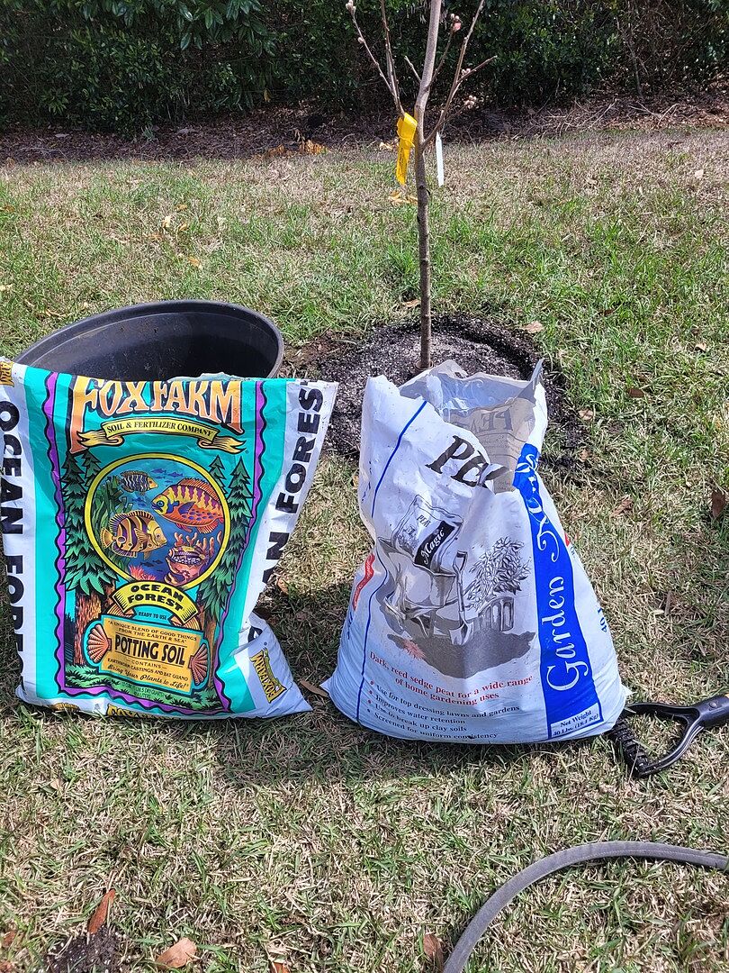 Delivered in great shape. Mixed up 2/3 potting soil . . . Not potting mix, not garden soil . . . . Potting soil with 1/3 garden magic peat. Planted White lady Peach Tree in very sunny location. 1 week after planting, it's blooming, it's green and just added a specified amount of organic citrus food. It looks great so far . . . MM, Tallahassee, Fla.